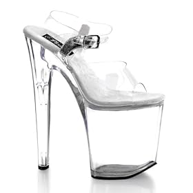 After over a decade of endeavoring to become the ultimate name in costume shoes, Pleaser is today synonymous with premium costume and exotic footwear; and it has become a standard which all others are judged by. Attention to detail, superb craftsmanship, fine materials, unique designs and unbeatable prices have helped establish Pleaser as the top choice among performers and costume shoe enthusiasts. With an expansive presence in almost 50 countries around the globe, Pleaser is the one of the most recognizable costume shoe brands in the world. In recent years, Pleaser's product offering has blossomed into an unrivaled variety of dressy, elegant, fashionable, sensual and retro styles. More than just part of costume attire, Pleaser's cutting-edge styles are seeping into every aspect of your lifestyles.Color: Clear - ClearHigh Platform8 Inch Heel